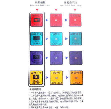 6、照明:30W日光燈架,臺面照度達到400Lux。燈具及鎮(zhèn)流器不得與通風柜內的氣流接觸,且更換方便。
